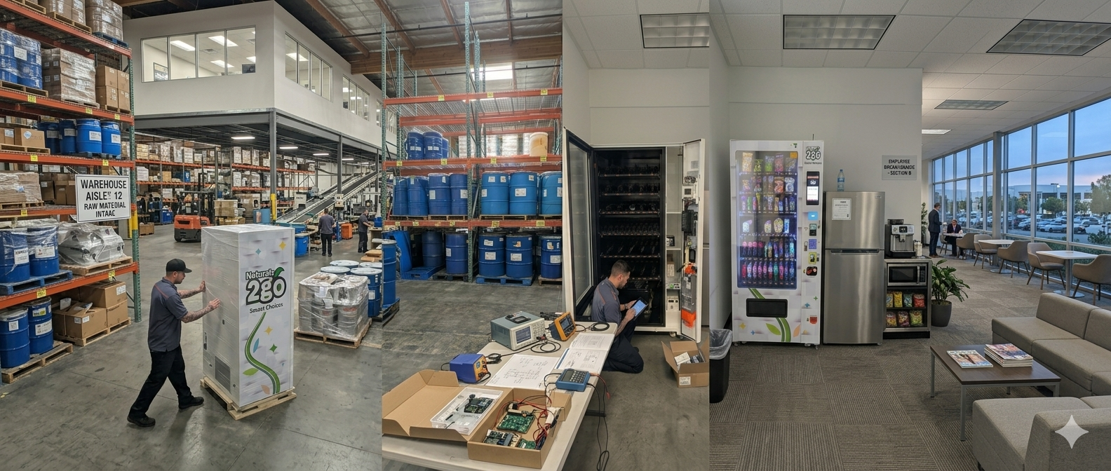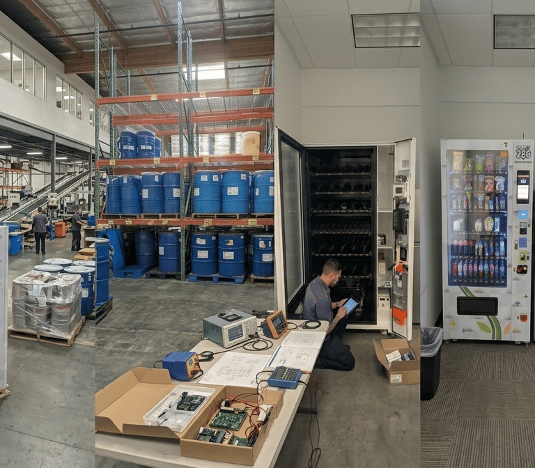 We track inventory to ensure timely refills and service. We clean and inspect machines for optimal performance.